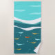 Retro Summer Ocean Waves Mid Century Modern Beach Towel
