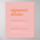 This retro summer pink and orange signature drinks sign is perfect for a colorful wedding. The unique modern vintage design features a blush pink, bright orange and vibrant hot pink color palette with fun tropical beach vibes.