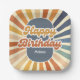 Retro Sun Groovy Wave Happy Birthday Paper Plates