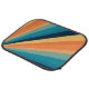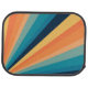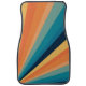 Retro style sun rays geometric pattern illustration with yellow, orange, blue and turquoise stripes decoration