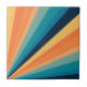Retro style sun rays geometric pattern illustration with yellow, orange, blue and turquoise stripes decoration