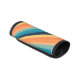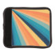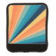 Retro style sun rays geometric pattern illustration with yellow, orange, blue and turquoise stripes decoration
