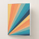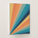 Retro style sun rays geometric pattern illustration with yellow, orange, blue and turquoise stripes decoration