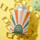 Green, orange and peach retro sunshine arch frame typography happy birthday can cooler.