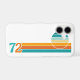 Retro vintage style sunset on extended horizontal stripe design with 72 (1972) typography in the style of the 1970s.