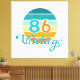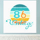 Retro vintage style sunset with 86 (1986) typography center in the style of the 1980s and Vintage in a scripted typographic design below in a distressed effect.