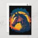 Illustration portrait of a horse in front of a beautiful retro sunset.