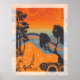 This poster showcases a retro sunset forest landscape design with bold tree silhouettes and vibrant orange and blue tones. The abstract art style blends modern boho with vintage flair, making it a striking piece for home, office, or studio decor. Perfect for adding color and creativity to any wall, this nature-inspired artwork is ideal for art lovers and those who enjoy unique, eye-catching prints.