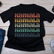 Make a bold statement with this vintage-inspired Kamala 2024 T-shirt. Featuring a multi-colored gradient design that spells out "Kamala" in bold letters, this T-shirt is perfect for showcasing your support in style. The sunset color palette transitions from warm reds and yellows to cool blues, giving this shirt a unique retro aesthetic. Ideal for rallies, events, or casual wear, this design blends politics with fashion for a standout look.