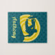 Retro Sunset Skateboarding Theme Custom Name Teal Jigsaw Puzzle