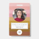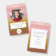 This eye-catching badge design features warm horizontal stripes in sunset shades of pink, orange, and brown, with space for a photo, name, title, and logo. Ideal for events, conferences, or office wear, it combines personality and professionalism in one bold, stylish layout.