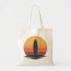 A vintage 70s-style sunset with a single surfboard silhouette.