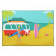 Every day can be a day at the beach with this Retro Surfer Couple Cloth Placemat. The 1960's style, minimalist art design features a fun-loving, sun worshiping, thrill seeking couple all ready to catch a wave. The setting is a tropical, island oasis with a beach of golden sand, swaying, green palm trees, a sparkling, peacock blue ocean, and an aqua sky. In the distance, we can see a teal volcanic island, which is dormant for the time being. Back on the beach, we can't help noticing the sweet ride that brought our couple to their dream destination. It's a mid century modern, red and white van with an orange and yellow surfboard strapped to the top. Though we can't be sure, it's fair to assume that the inside of the van features groovy, shag carpeting and the smell of incense! Surfer Dude and Beach Babe have matching sun-kissed tans, sun-bleached hair, and blue, tiki patterned swimsuits. Surfer Dude is holding a blue surfboard. Beach Babe is standing beside her two-toned, pink surfboard. Lying nearby, there is a red and white beach ball, waiting to fulfill its summer destiny. Catch some waves and share some love with this kitschy summer design!