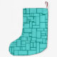 Every day can be a day at the beach with this Retro Surfer Dude Christmas Stocking. The 1960's style, minimalist art design features a sun-kissed, blond, surfer dude all ready to catch a wave. Our fit surfer is gazing out on the ocean through the sliding glass doors of his beachfront home. He is standing in his aqua colored living room. We can see an aqua and turquoise, stone wall and mid century modern, orange chair. On the opposite side of the glass door, we can see a patio. Beyond that, there is a golden, sandy beach, swaying palm tree, sparkling, peacock blue ocean, and an aqua sky. In the distance, we can see a teal volcanic island, which is dormant for the time being. Surfer Dude is holding a blue surfboard and wearing blue, tiki patterned board shorts. The opposite side of this holiday stocking features an aqua and turquoise stone pattern. Catch some waves and share some love with this kitschy summer design!