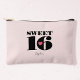 Celebrate a sweet sixteenth in style with a custom accessory pouch! Perfect for the birthday girl who loves retro-modern looks and a bold style. The design features "Sweet 16" in stylish typography, accented by a pink love heart. Personalize the template with the teen's name in trendy script. A cute gift for a teenage daughter, sister, niece or best friend! Printed colors: pink, blush pink, black and white.