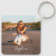 Celebrate a sweet sixteenth in style with a custom photo keychain! Perfect for the birthday girl who loves retro-modern looks and a bold style. The design features "Sweet 16" in stylish typography, accented by a pink love heart. Personalize the template with the teen's name in trendy script, and a favorite photo. A cute gift for a teenage daughter, sister, niece or best friend! Printed colors: pink, black and white.