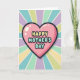 This card centers on a big, rounded heart in bubblegum pink with glossy highlights that look like soft reflections, giving it a sweet, affectionate glow ❤️. A dark outline around the heart makes it stand out, like a warm hug drawn with confidence. Inside the heart, the words “HAPPY MOTHER’S DAY” sit neatly in the middle, with “HAPPY” in sunny yellow and “MOTHER’S DAY” in gentle teal, each letter rounded and outlined in pale pastel tones. The friendly lettering feels like it’s leaning in close, the way someone does when they’re sharing love and appreciation. Behind the heart, a radiating sunburst spreads outward in muted pastel stripes, adding a cozy, celebratory energy without feeling loud. Soft bands of lavender, sky blue, mint green, and creamy pale yellow alternate around the center, like a bouquet of spring colors 🌼. The rays fan out evenly from behind the heart, forming a circular burst that frames the message.