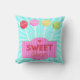 Retro Sweet Shop Pastel Candy Lollipops on Stripes Throw Pillow