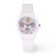 I was pleasantly surprised by the good quality of this watch. It's an easy size to wear on a small wrist and both the band and the watch are well made. I also liked the translucent case the watch is packaged in. The printing is crisp and clear and shows off my Create With Photos oyster flower design well.