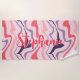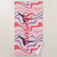 Retro Swirl Abstract Wave Pink Purple Custom Name Beach Towel