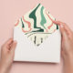 Plain white envelopes are included with paper invitations and will come to fit the invitation size you select. If you don’t need the envelopes, you may choose to not receive them by selecting the dropdown below "Envelopes" and choosing "None." If you’d like to have a design on your envelopes, you can browse all of these available envelopes to find the design that complements your Retro Swirl Arch Mint Green Pink Wedding Invitation.