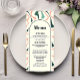 The "Retro Swirl Arch Mint Green Pink Wedding Menu" presents a tasteful blend of vintage flair and chic sophistication. This menu card features whimsical swirls in mint green and pink, creating an archway that highlights the culinary offerings of the event. The contemporary layout is balanced by the playfulness of the retro-inspired design, setting the stage for a dining experience that is both elegant and inviting. Perfect for couples looking to add a splash of color and nostalgia to their table setting, this menu is a visual treat that promises a memorable gastronomic journey.