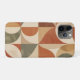 This image features a retro-inspired geometric pattern with a warm, earthy color palette. The design is made of repeating square tiles, each divided into fluid, teardrop-like shapes. The colors—terracotta, beige, deep green, and various shades of brown—have a slightly distressed or weathered texture, giving the pattern an authentic vintage feel. This aesthetic is reminiscent of mid-century modern design and would work well for wallpapers, textiles, or decorative tiles.