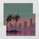Retro Synthwave Cityscape Sunset Postcard
