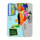This customizable Retro Teacher Flexible Magnet gets an A+! This 1960's style, minimalist art, cartoon drawing features a vibrant, elementary classroom with everything needed to mold the minds of the future. It's the sort of room where ideas are valued and creativity is praised. At the front of the mid century modern classroom, we see the school's most popular teacher standing in front of a chalkboard. Teacher is wearing a bright green and yellow dress, with yellow shoes. Even though the clock on the blue wall tells us it is almost time for the final bell to ring, she still looks as fresh as a daisy. Her black hair is kept in place with a yellow headband and her mod, red glasses help her see to curtail any mischief on the back row. She is resting one hand on her orange and black desk. The clean desk is a tribute to her fine organizational skills. The only thing on the desktop is a shiny, red apple, which was undoubtedly given to her by an adoring student. Speaking of students... We can see a couple of those, as well. From our vantage point, we can see two eager students sitting behind their red, school desks. There is a blonde girl with a bouncy ponytail wearing a bright pink dress. Next to her, there is a dark haired lad wearing a green shirt and blue jeans. Each child is holding a bright blue school book. They are so eager to learn that they haven't even noticed it is almost time for them to board the yellow school bus we see waiting for them through the open blinds on the classroom window. Beneath the window, there is an orange bookshelf holding colorful books and a globe of the world. Don't worry, kids. Tomorrow, you will be back in your places with bright, shining faces. The name on the chalkboard is customizable.