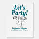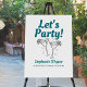 Retro meets celebration with this 50th birthday party Welcome sign. Designed with “Let’s Party” in a retro font, two outlined cocktail glasses toasting with hearts, and elegant serif party details in teal and black on a white background, it’s the perfect sign for a fun and stylish milestone birthday. All text is fully customizable.