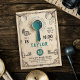 Immerse yourself in the thrill of a retro escape room mystery-solving party with our exquisitely designed invitation. Featuring a vintage paper background adorned with intricate illustrations of engraved keys, moths, butterflies, and a magnifying glass, these invitation set the perfect tone for your event. The centerpiece showcases a key-shaped teal tear for added intrigue. Customize the teal blue and black text to add a personal touch, and enjoy the elegant burgundy reverse side for a classic finish.