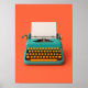 Retro Teal Typewriter on Vibrant Orange Poster