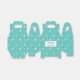 Editable Thank You favor box with script and serif letters on a retro atomic teal and white star pattern on light teal background.