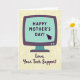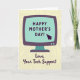 This card features a retro-style computer monitor with rounded edges, colored in deep plum with a matching stand, set against a warm, muted beige background. The screen glows in soft aquamarine, giving the scene a cozy, affectionate feel, like a gentle check-in from someone who’s always there to help ❤️. Centered on the screen, the text “HAPPY MOTHER’S DAY!” appears in rich plum, standing out clearly against the light display. A dark purple pointer arrow tilts toward the words, as if someone just clicked to send a caring note. Behind everything, faint circuit-board lines spread across the beige backdrop, adding a quiet tech theme without crowding the main image. Beneath the monitor, a smaller line of text reads “Love, Your Tech Support” in plum, placed low and centered, with a softer flowing letter style that feels friendly and close 🌼. The overall layout keeps the monitor as the main focus, with the pointer near the message and the circuit pattern lightly etched in the background.