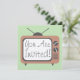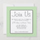 An invitation featuring an illustration of a mauve-colored retro television set with gray accents. Green background. Opposite side features matching green background. Personalize with details of your occasion inside gray frame.