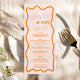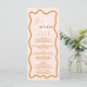 A cool bold wedding menu with custom names with a hand written calligraphy and serif font, 2 names , two styles with Retro boho terracotta curve squiggle wavy wedding. All the text, names and background colors are customizable for you to mix and match your wedding suite.