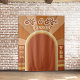 This fun and groovy wedding reception photo backdrop is perfect for the summer season. It features a retro sun design with 70's typography. The color scheme includes terracotta, orange, mustard-yellow, and beige. It's playful, unique, boho, and hippie. It's the perfect design to spark jovial vibes inside each heart of your guests.
