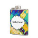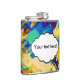 Well made flask, a little better than I had expected. Flask came in clear plastic box which gave it a nice presentation when I took it out of the zazzle packaging. Image is not printed on flask but on sticker. Don't know how this will hold up I haven't used it yet. This would make a Great gift! I plan to purchase more for friends! Cheers. I thought a little brighter than computer. Very crisp, writing wasn't