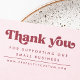 Rubber stamp featuring the text "Thank you" in a bold, retro style font, and customizable text below "for supporting our small business". Add a website address or other custom text.