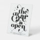 Retro The Bar is Open Vintage Typography Pedestal Sign. Customise all text and graphics to perfectly match your event's colors.