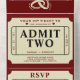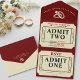 This tan and burgundy retro theater movie ticket stub wedding invitation features a stylish and nostalgic design with the words "Admit Two" for a unique wedding experience. Combining vintage theater elements with modern flair, this all-in-one invitation includes all the details your guests need for your big day. Ideal for weddings, anniversaries, and movie-themed celebrations, it adds a touch of entertainment and fun to your event. Personalize it by adding your ceremony details.
