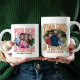 Retro goat mug for mom with custom photo. Your photo will be displayed in a wavy edge sticker shape and framed with "this mom is the goat". lettered in retro typography and decorated with love hearts. Personalize with the name(s) of the kid, children or any text you like. Use the same photo front and back or, a different photo for each side. Feel free to customize the color palette in the design tool. Cool and useful gift for a mom who's the 'Greatest Of All Time' for holiday, birthday, mother's day or just because!