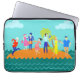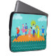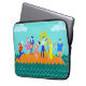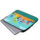 Mayday! Mayday! This Retro Three Hour Tour Laptop Sleeve features a 1960's style, minimalist cartoon drawing of seven stranded castaways on a formerly deserted tropical island. The kitschy, mid century modern design shows teal waves lapping against the orange, island sand. Against the backdrop of a turquoise sky, we can see the passengers and crew of a doomed sightseeing expedition. Hmm... Let's see, who we have here. There's a lanky, young man wearing blue, bell-bottom pants, a red shirt with white collar, and a white bucket hat. On the opposite side of the island, the brave and sure skipper is wearing khaki pants, a blue shirt, and a blue, captain's hat. In one hand, this sizable sailor is holding a portable radio, which is their last link to civilization. Next to the free-spirited first mate, we see a wealthy couple. They appear to be a millionaire and his wife. The man is wearing a hand-tailored, blue suit, red tie, and blue fedora hat. In one hand he is holding an orange suitcase, which seems to be stuffed with cash. His other arm is draped around the waist of his lovely wife. She looks the part of a high-society matron in her hot pink dress with matching hat and handbag. Money is casually escaping her designer purse. On one hand, she is wearing a 40-carat diamond ring, which is roughly the size of a doorknob. A ginger-haired starlet is also among those on the island. This glamorous movie star is wearing a slinky, yellow, evening dress with a slit cut up to there. And then there are the rest of the castaways... Oh, what the heck! We'll go ahead and describe them. There is a good looking scholarly gentleman wearing blue pants and a lighter blue shirt. He is deep in thought as he reads the textbook in his hand. Let's hope he's reading up on how to build a boat to get them off of the island! We also see a fresh faced, farm girl from Kansas. This petite cutie is wearing a red, gingham dress that is just right for pie baking. Oh, look! She's holding a pie. No one will go hungry on this island. In the background, we see two swaying palm trees that will be the ideal place for hanging a hammock. This is the perfect design for every fan of classic television and pop culture.