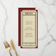 Retro movie ticket stub menu for a wedding, birthday party, or other event. Tan brown and burgundy color scheme. Personalize it by adding your own meal list and event details.