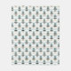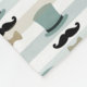 This fun fleece blanket features a pattern of teal top hats, moustaches, and bow ties on a light teal, white, and tan stripe background. Cute!