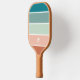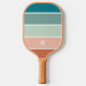 Retro Trendy Stripe Personalized Pickleball Paddle with editable colors and personalization font. Shown in teal blue, mint green, coral pink, and terracotta with completely editable stripe colors to match your favorite color vibes.