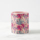 Retro tropical hibiscus wren patterned coffee mug in summer elegant colors with Australian tropical flowers and palm leaf greenery and little wrens, perfect Australian gift for Australian flora lovers and gardening enthusiasts, illustrated by Jo Story of Sketchbook Designs