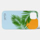 Retro Tropical Sun Palm Leaves Blue Minimal Name Case-Mate iPhone Case