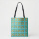 Retro Turquoise and Orange Trellis Tote Bag