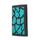 A bold black and turquoise giraffe pattern decorates this stylish wallet. The design is from original art.
